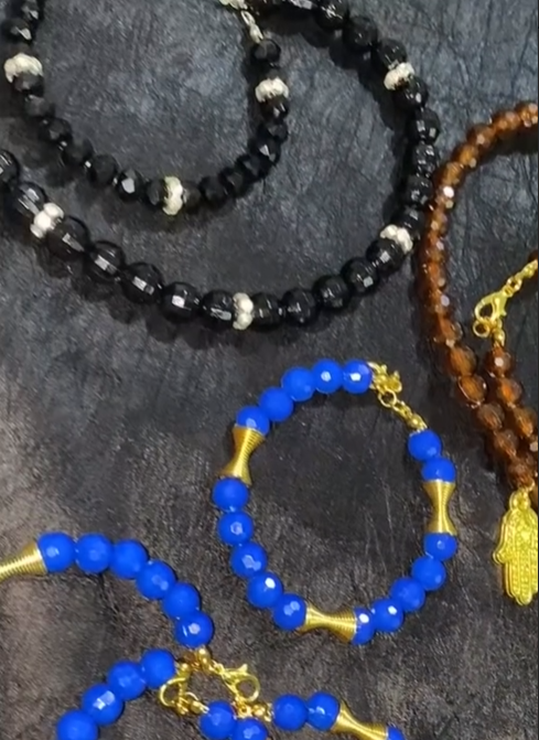 Sleek, jet-black beads paired with dangling gold-tone coin charms. This set offers a Bohemian-chic vibe with a rhythmic “jingle” feel. The matching beaded ring completes the sophisticated, dark-themed aesthetic.